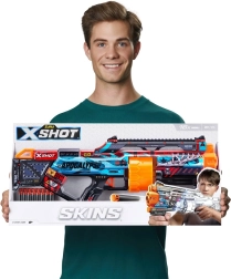 Intră în luptă cu X-Shot Skins Last Stand, un blaster care combină performanța, stilul și distracția. Datorită tamburului rotativ automat vei trage 14 săgeți într-o clipă, în timp ce designul ergonomic și mânerul tactic îți oferă o prindere sigură în orice situație. Ediția Skins aduce 4 „skin-uri” unice, astfel încât poți alege aspectul exact pe gustul tău.