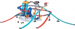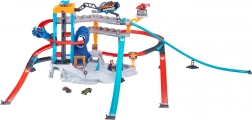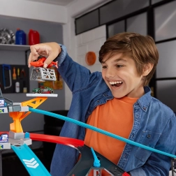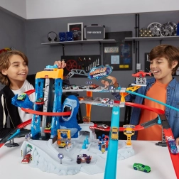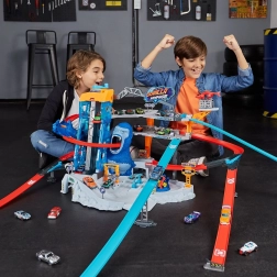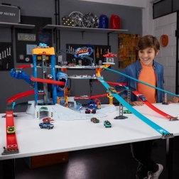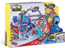 Pista de curse Metal Machines Gorilla Garage vine cu stații de reparații și platformă pentru elicopterul de salvare, care poate transporta vehiculele tale. Pe lângă asta, o gorilă imensă se zbuciumă frenetic, gata să atace! Poți trece prin fălcile sale mari și scăpa la timp?