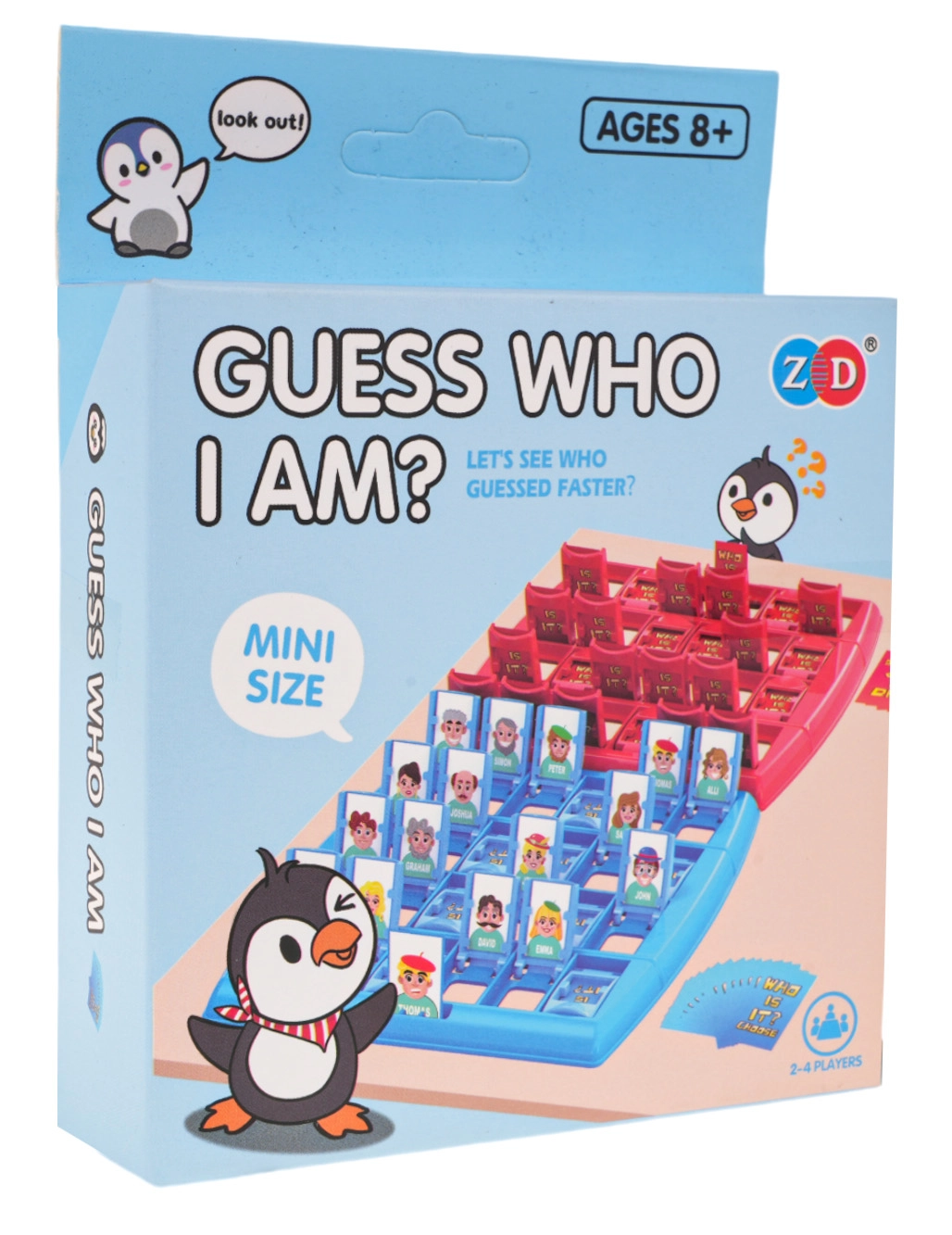 Un joc de ghicit îndrăgit pentru 2 jucători. Fiecare jucător are propria planșă cu ferestre rabatabile și un personaj ales în secret. Cu ajutorul întrebărilor bine gândite, la care se răspunde cu „da” sau „nu”, restrângi treptat opțiunile până când ghicești corect pe cine a ales adversarul. Varianta Pinguin aduce un design proaspăt și distracție pentru întreaga familie.