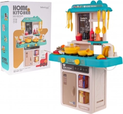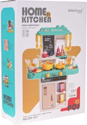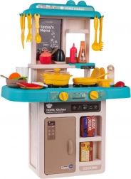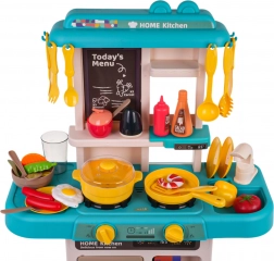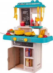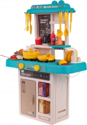 Această bucătărie pentru copii, în nuanțe la modă de albastru–turcoaz, transformă camera într-un mic bistro. Plita interactivă, la rotirea butoanelor, emite sunete de gătit și prăjit și iluminează arzătoarele. Din robinet chiar curge apă, astfel încât copiii pot clăti vasele după „gătit”, ca într-o bucătărie reală.