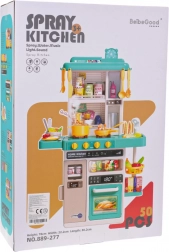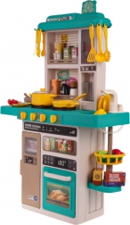 Această bucătărie pentru copii aduce un joc realist de gătit datorită arzătoarelor iluminate, butoanelor rotative și sunetelor de prăjire și fierbere. De la un arzător se eliberează abur fin de apă, care intensifică experiența. Robinetul cu apă curgătoare le permite micilor bucătari să clătească vasele ca într-o bucătărie adevărată.