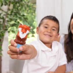 Ștampiliera pentru copii cu vulpiță creează autocolante ce pot fi folosite imediat în cărticica de activități. Fără lipici, fără dezordine – doar distracție curată.