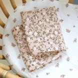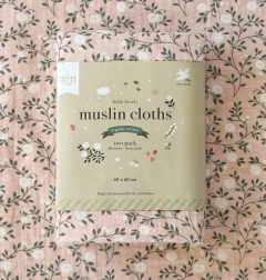 Set de două scutece din muselină, 100% bumbac organic, cu imprimeu floral fin. Scutecele sunt ușoare, absorbante și respirabile, ideale pentru utilizare zilnică la hrănire, înfășare și baie. Dimensiunea unui scutec este 60 × 60 cm.