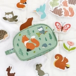 Acest set de jucării de baie din spumă cu animale din pădure oferă copiilor de la 3 ani o distracție creativă la fiecare baie. Piesele, după umezire, aderă pe pereții căzii sau pe faianța băii, astfel încât copiii își pot crea propriile povești și imagini. Materialul nu absoarbe apa, se usucă rapid și este igienic.