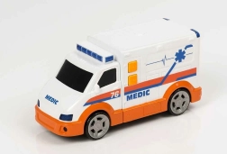 Pornește într-o misiune de salvare cu ambulanța TEAMSTERZ de 16 cm. Oferă efecte luminoase, sunete realiste și girofar funcțional, care stimulează imaginația copiilor. Datorită construcției din plastic de calitate și dimensiunii practice, este ideală pentru micii salvatori de la 3 ani.