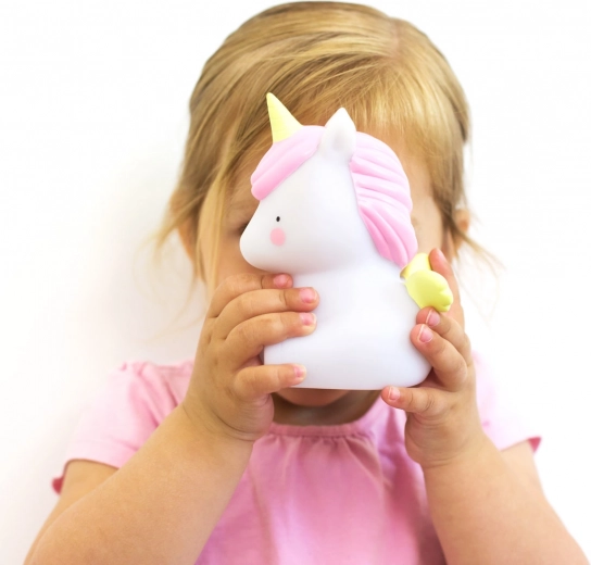 Această mică lampă de noapte drăgălașă în formă de unicorn emană o strălucire blândă și liniștitoare, care îi ajută pe cei mici să se simtă în siguranță și să adoarmă mai ușor. Este fără cabluri, nu se încălzește și, datorită dimensiunilor sale compacte, se transportă ușor chiar și în călătorii.