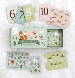 Puzzle educativ distractiv pentru cei mici, care îi ajută pe copii să învețe să numere asociind cifra cu imaginea corespunzătoare a animalelor din pădure. Conține 10 puzzle-uri din două piese din carton gros, ideal pentru mânuțe mici, și este păstrat într-o cutie practică pentru depozitare ușoară. Potrivit de la 2 ani.