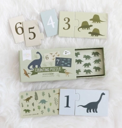 Puzzle educativ distractiv care îi învață pe copii de la 2 ani să numere. Conține 10 puzzle-uri din două piese, în care copiii potrivesc numerele cu imaginile dinozaurilor. Piese mari și rezistente din carton, ușor de manevrat de mâini mici, și o cutie practică pentru depozitare facilă.