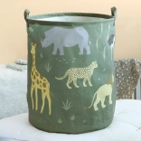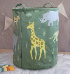 Coș de depozitare pentru jucării, încăpător, cu motiv de animale din savană, oferă un volum de 63 l pentru ordine rapidă în camera copilului. Datorită căptușelii interioare din PE este potrivit și pentru colectarea rufelor, se pliază ușor și servește și ca decor stilat.