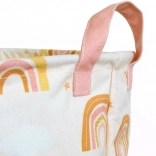 Coș de depozitare stilat, cu motiv vesel de curcubeu, aduce ordine și un design jucăuș în camera copiilor. Este ușor, stabil și, datorită stratului interior de PE, potrivit și pentru colectarea rufelor.