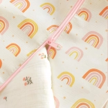 Geantă de depozitare XL practică, cu motiv curcubeu, oferă un volum generos pentru organizarea clară a hainelor, păturilor și jucăriilor. Este ușoară, din plastic reciclat rezistent, se pliază ușor și se închide în siguranță datorită fermoarului. Excelentă și pentru călătorii, la plajă sau la piscină. Volum mare 73 l, închidere cu fermoar, depozitare ușoară, material sustenabil.