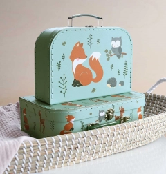 Descoperă setul fermecător de două valize cu ilustrații cu vulpi, bufnițe și alți prieteni ai pădurii. Datorită celor două dimensiuni, organizezi cu ușurință jucării, creioane și mici comori. Construcția din carton rezistent cu cusături de calitate rezistă utilizării zilnice, iar mânerul și închizătoarea metalică asigură transport confortabil și închidere sigură.