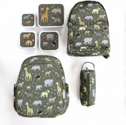 Motivul cu animale din savană poate fi asortat cu alte accesorii, precum cutii pentru gustare și penar.