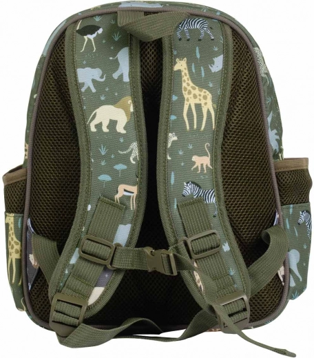 Un rucsac pentru copii stilat și practic, cu motiv de animale din savană, ideal pentru grădiniță și excursii. Oferă compartiment principal încăpător, buzunar frontal izolat pentru gustare și două buzunare laterale pentru sticlă. Pentru purtare confortabilă are bretele căptușite, curea de piept împotriva alunecării și spate căptușit și respirabil.