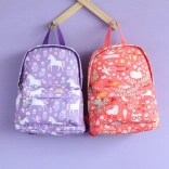 Rucsăcel adorabil pentru copii de la 2 ani, cu compartiment principal încăpător și buzunar frontal cu fermoar pentru gustări și jucării. Datorită bretelelor căptușite, panoului dorsal confortabil și curelei de piept, stă sigur pe spate. Ușor și din poliester rezistent, este decorat cu un imprimeu colorat pe care copiii îl vor iubi.