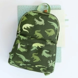 Imprimeul distractiv cu crocodili îi încântă pe copii, iar datorită curelei de piept rucsacul rămâne mereu în siguranță pe umeri.