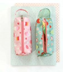 Penar roz elegant pentru creioane și instrumente de scris, realizat din poliester sustenabil, cu model de înghețată. Ușor, căptușit și cu închidere cu fermoar, păstrează în siguranță creioanele, cariocile și pixurile. Bucla practică facilitează transportul la școală, la activități sau în călătorii.