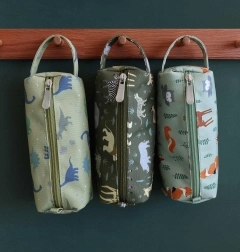 Penar verde stilat pentru creioane colorate, cu imprimeu cu dinozauri, realizat din poliester sustenabil. Închidere practică cu fermoar, căptușeală și mâner confortabil pentru a păstra în siguranță rechizitele atât acasă, la școală, cât și în călătorii.