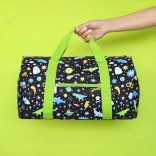 Această geantă de voiaj pentru copii este creată pentru aventurile de zi cu zi. Compartimentul principal cu buzunar suplimentar găzduiește haine, încălțăminte și mărunțișuri, în timp ce două buzunare laterale și compartimentul frontal cu fermoar păstrează totul bine organizat. Poliesterul ușor, dar durabil, cu imprimeu colorat, atrage la prima vedere și rezistă utilizării frecvente.
