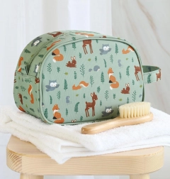 O trusă de toaletă drăguță și spațioasă, cu motivul prietenilor din pădure, ideală pentru excursii, tabere și vacanțe. Oferă un singur compartiment mare pentru toate articolele de igienă și o mâner practic pentru transport și agățare ușoare.