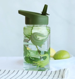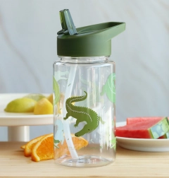 Această sticlă stilată cu motiv crocodili îi ajută pe cei mici să respecte ușor hidratarea zilnică. Datorită capacului sigur și paiului, băutul este confortabil, iar sticla rămâne fără scurgeri. Pereții transparenți ajută la monitorizarea cantității de lichid, iar dimensiunile compacte încap în orice rucsac pentru copii.