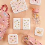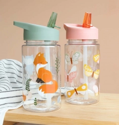 Sticla transparentă pentru copii cu imprimeu cu fluturi de la A Little Lovely Company este ideală pentru grădiniță, excursii și uzul zilnic. Datorită paiului practic și capacului etanș, băutura este mereu la îndemână și fără accidente. Volum 450 ml, material rezistent Tritan. Poate fi asortată cu rucsacul și caserola pentru gustare în același design pentru un set complet. Fără BPA, nu curge și este ușoară pentru mâinile copiilor.