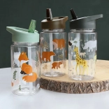 Sticlă transparentă pentru copii, cu motiv vesel cu animale din savană, cu volum de 450 ml. Este etanșă, ușoară și ideală pentru excursii, grădiniță și școală. Poți asorta rucsacul și cutia de gustare în același design.