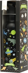 Sticla stilată din oțel inoxidabil A Little Lovely Company cu volum de 500 ml, cu motiv spațial, este ideală pentru școală, activități și excursii. Datorită izolației duble, păstrează băuturile răcoritoare sau calde pentru mult timp. Include o gură practică cu pai pentru băuturi reci și execuție durabilă din oțel inoxidabil pentru utilizare zilnică.