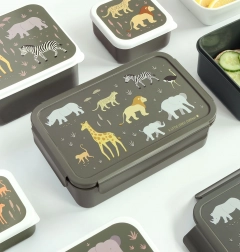 Acest lunch box practic, cu motiv de animale din savană, îi va încânta atât pe copii, cât și pe părinți. Datorită capacului fiabil cu închidere tip click, conținutul nu se varsă și rămâne proaspăt mai mult timp. Tăvița detașabilă cu două compartimente permite separarea ușoară a fructelor, sandvișului sau gustărilor.