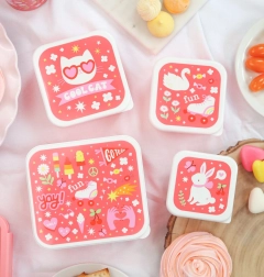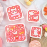 Descoperă setul practic de 4 caserole pentru gustări de la A Little Lovely Company, care, datorită dimensiunilor diferite, acoperă perfect prânzul, fructele, legumele și micile gustări. Cutiuțele au un imprimeu jucăuș unitar și pot fi ușor introduse una în alta, astfel încât acasă ocupă foarte puțin spațiu.