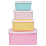 Set practic de patru caserole pentru gustări, în patru dimensiuni, cu motiv de căpșuni. Caserolele se deschid ușor, pot fi stivuite una în alta pentru a economisi spațiu și sunt realizate din material PP rezistent – ideale pentru prânz și gustări la școală, grădiniță sau în excursii.
