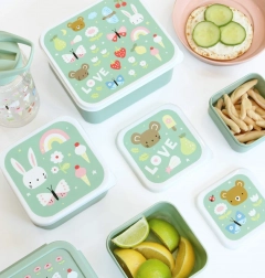 Acest set aduce un design jucăuș și soluții inteligente pentru ambalarea zilnică a mâncării. Patru dimensiuni diferite facilitează împărțirea gustărilor și o organizare clară. Datorită formei stivuibile, cutiile se depozitează econom la finalul utilizării, una în alta.