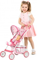 Acest cărucior modern pentru păpuși este conceput să fie super ușor, confortabil și ușor de manevrat. Datorită capotinei reglabile, păpușa poate fi protejată la joacă, atât în casă, cât și afară, în timp ce coșul inferior oferă loc pentru toate mărunțișurile.