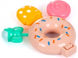 Setul include accesorii bogate care asigură ore întregi de distracție creativă: stand cu gogoși, monede și bancnote, precum și alte elemente pentru o experiență „de cofetărie” autentică. Setul asamblat are dimensiuni compacte de 27 × 29,5 × 14 cm, încadrându-se în orice cameră de copii.