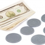 Stand cu gogoși, monede, bancnote și alte accesorii pentru o experiență completă de mică cofetărie.