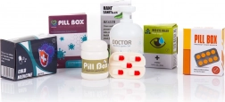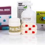 Instrumente precum seringă, stetoscop și termometru ajută copiii în jocul educativ.