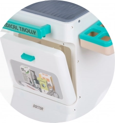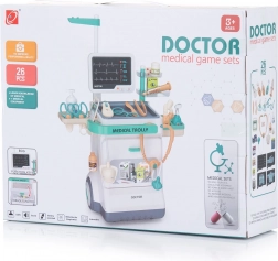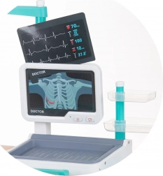 Acest set de joacă este ideal pentru copiii care doresc să devină medici. Conține 26 de piese accesorii inclusiv un cărucior cu rafturi pentru accesorii, panou cu raze X iluminat și alte completări medicale. Copiii se pot bucura de joacă interactivă cu sunete și lumini.