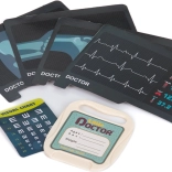 Setul include carduri radiografice pentru simularea diagnosticelor medicale, permițând copiilor să se joace de-a doctorul.