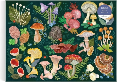 Descoperă farmecul naturii cu puzzle-ul GALISON Lumea ciupercilor, cu 1000 de piese. Piesele decupate cu precizie creează, după asamblare, un tablou elegant cu diferite specii de ciuperci, care va încânta iubitorii naturii și ai micologiei. Puzzle-ul este fabricat din materiale certificate FSC și imprimat cu cerneluri netoxice, fiind prietenos atât cu natura, cât și cu locuința ta. Ideal ca distracție pentru întreaga familie și cadou original.