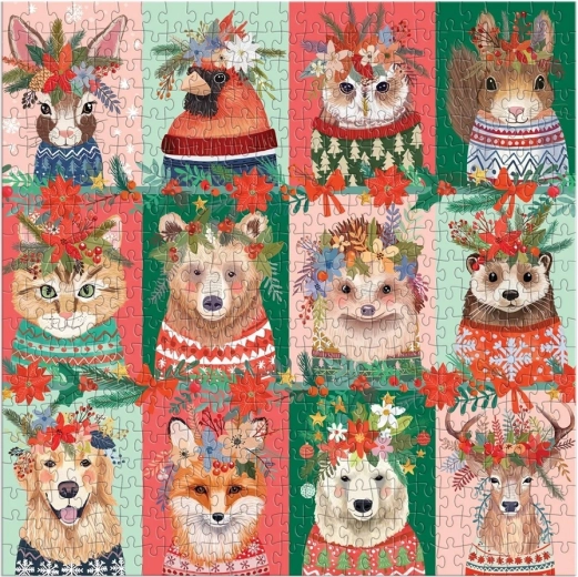 Bucurați-vă de momente relaxante cu un puzzle care îi va încânta pe iubitorii de animale și ai Crăciunului. Ilustrația colorată prezintă blănoși adorabili în ținute festive, iar după asamblare creează un pătrat de 50,8 × 50,8 cm – o imagine superbă pentru expus și pentru refăcut de nenumărate ori.