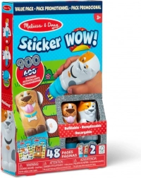 Setul STICKER WOW! Câine și Pisică aduce două cărticele tematice pline de activități, ilustrații vesele și autocolante reutilizabile. Copiii se vor bucura de sarcini simple, decorarea scenelor și ștampilarea cu motive de animale, care stimulează creativitatea și concentrarea. Construcția practică este perfectă pentru călătorii și pentru camera copiilor.