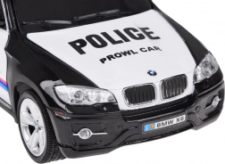 Acest model reproduce exact vehiculul de poliție BMW X6 cu detalii autentice, inclusiv insigna poliției și banda luminoasă de pe acoperiș.