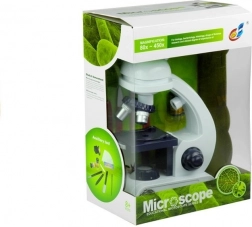 Aparatul prezentat va fi un ajutor excelent în descoperirea naturii și biologiei. Accesoriile incluse în set garantează o joacă reușită și mai ales educativă. Construcția jucăriei permite utilizarea luminii naturale și a luminii integrate în microscop. Partea superioară a microscopului se rotește la 360 de grade, iar în mâner sunt plasate trei obiective cu măriri 80x, 200x și 450x. În partea frontală a mesei se află un disc rotativ cu patru filtre care modifică culoarea preparatelor. O altă caracteristică interesantă a jucăriei este mărirea reglabilă a telescopului.