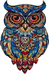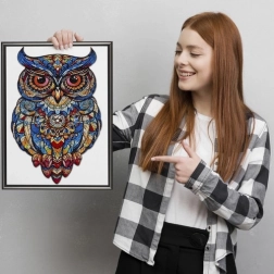 Acest puzzle din lemn se remarcă prin calitatea superioară a execuției – fiecare piesă este tăiată cu laser cu mare precizie și se potrivește perfect. După asamblare, obții o decorațiune de interior impresionantă și colorată în forma unei bufnițe, cu siluetă neregulată. Puzzle-ul este realizat din placaj de lemn rezistent, astfel încât suportă asamblări frecvente și utilizare îndelungată.