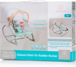 Scăunelul balansoar Chipolino Melody oferă un loc confortabil și sigur pentru odihnă și joacă. Căptușeala moale, construcția stabilă și comutarea ușoară între cele două poziții ale spătarului asigură confort în orice situație. Vibrațiile și melodiile integrate ajută la liniștire și adormire rapidă.