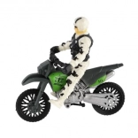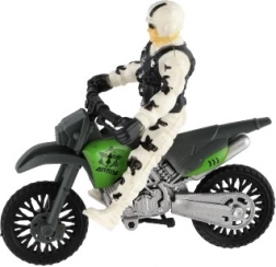 Motocicletă din plastic detaliată, cu roți funcționale, ideală pentru urmăriri și explorarea terenului.