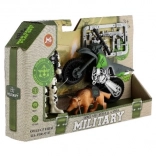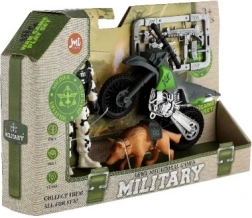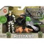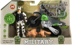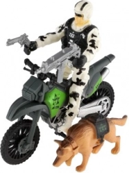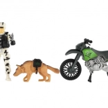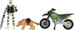 - Set complet pentru joacă imediată: motocicletă, soldat, câine și accesorii