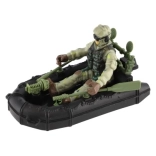 Barca neagră, ușoară, cu saci laterali este pregătită pentru recunoaștere și operațiuni de salvare. Completează perfect scenariile de lângă apă și joaca din cameră.