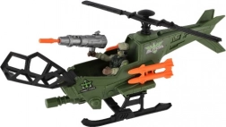 Acest set realist aduce copiilor lumea palpitantă a misiunilor aeriene. Elicopterul verde cu rotoare negre și rachete portocalii, cabina detaliată și figurina de soldat articulată susțin imaginația, motricitatea fină și jocul de echipă.