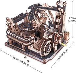RoboTime Cosmodrom este un puzzle 3D din lemn, realizat cu precizie, și o pistă de bile într-un singur produs. Folosește roți dințate ingenioase, lifturi și comutatoare de traseu, care împreună oferă o mișcare lină și dinamică a bilelor. Modelul poate fi acționat manual sau electric prin cablu USB‑C (neinclus), pentru a te bucura de un spectacol continuu.